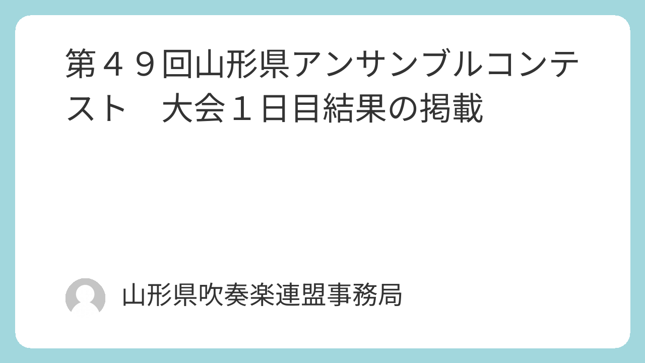 お知らせアンコン 第49回山形県アンサンブルコンテスト 大会1日目結果の掲載 お知らせ 2026.01.17 2026年1月17日に開催された、第49回山形県アンサンブルコンテスト1日目 中学生の部の結果を掲載します。 中学生の部結果